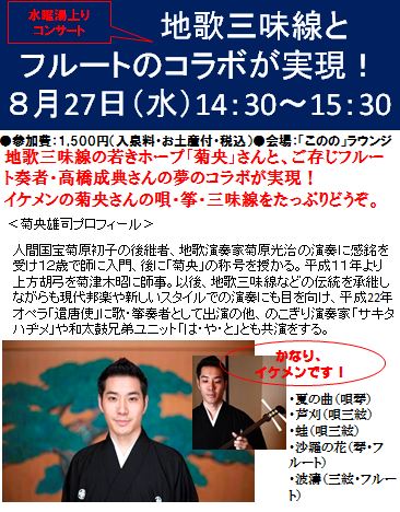 地歌三味線の若きホープ「菊央」さんと、ご存じフルート奏者・高橋成典さんの夢のコラボが実現!