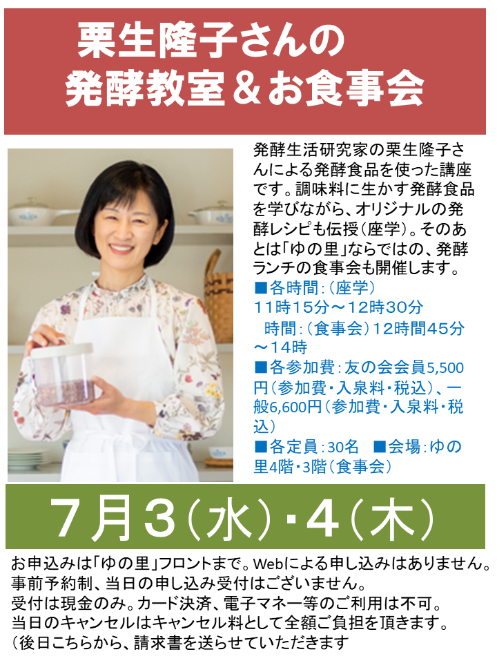 「ゆの里」ならではの、発酵ランチの食事会も開催します。