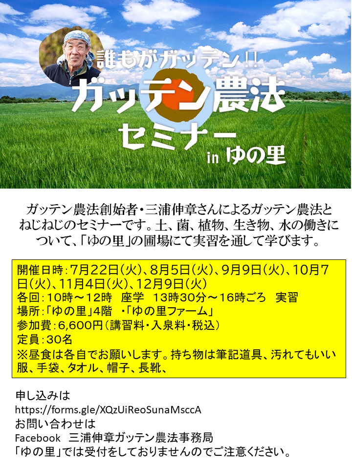 場所:「ゆの里」4階 ・「ゆの里ファーム」