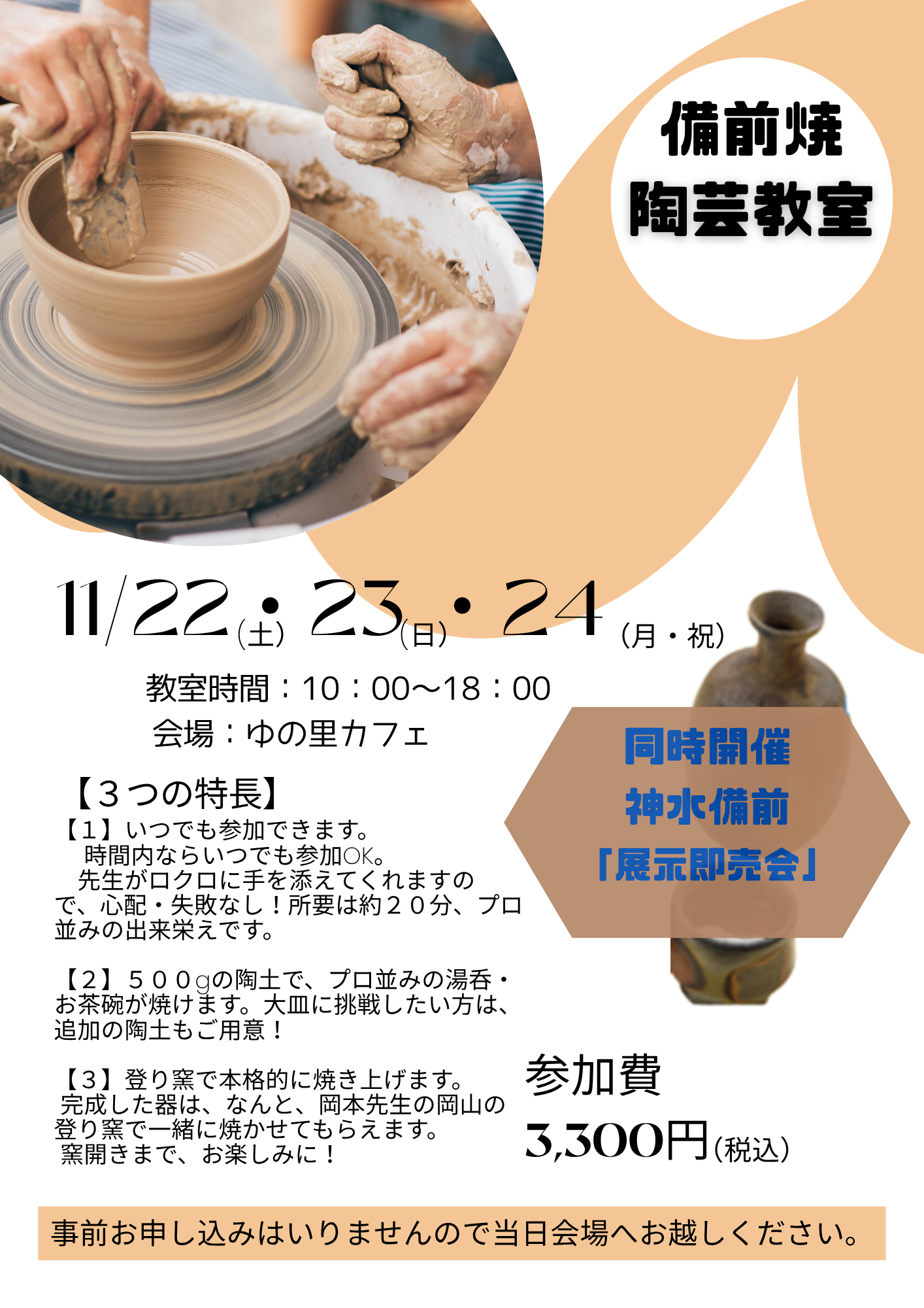 【2】わずか参加費3,300円(粘土代・税込)で 高価な備前焼が完成!
