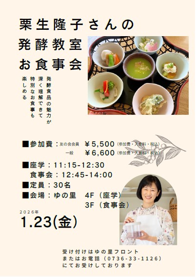「ゆの里」ならではの、発酵ランチの食事会も開催します。